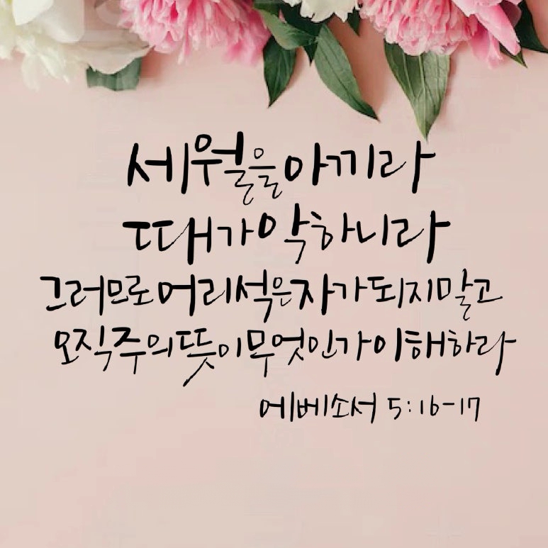 “세월을 아끼라 때가 악하니라 그러므로 어리석은 자가 되지 말고 오직 주의 뜻이 무엇인가 이해하라.”