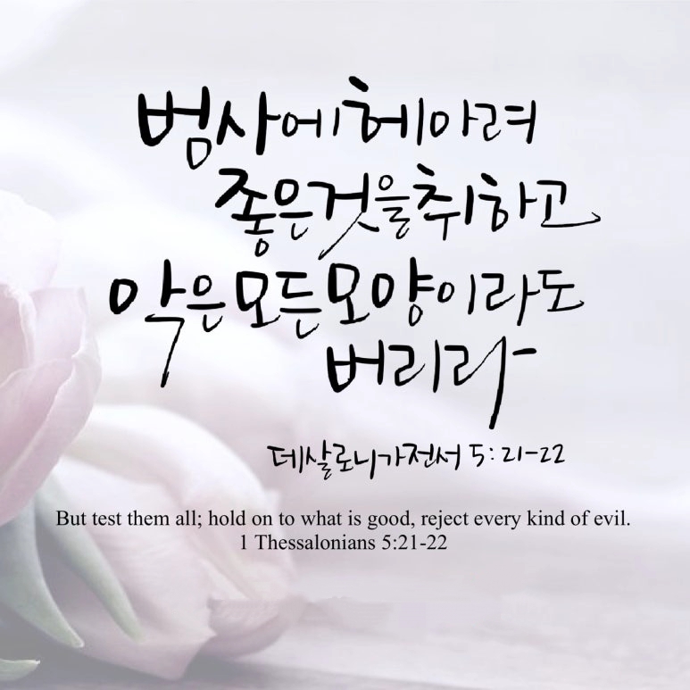 "범사에 헤아려 좋은 것을 취하고 악은 어떤 모양이라도 버리라"