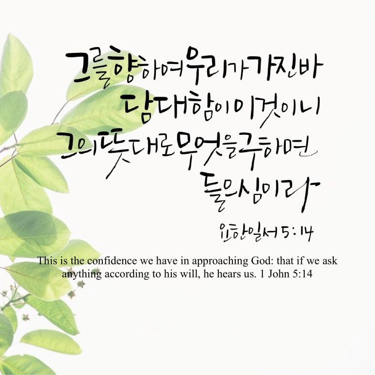 "그를 향하여 우리가 가진 바 담대함이 이것이니 그의 뜻대로 무엇을 구하면 들으심이라"