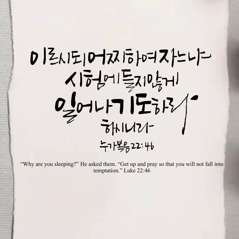 "이르시되 어찌하여 자느냐 시험에 들지 않게 일어나 기도하라 하시니라"