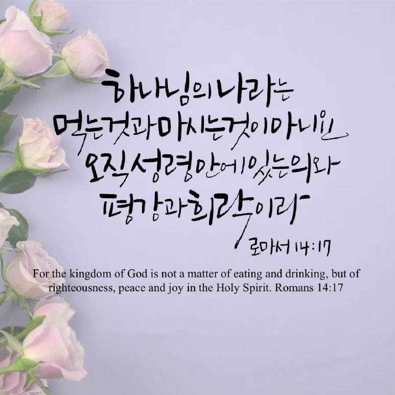 "하나님의 나라는 먹는 것과 마시는 것이 아니요 오직 성령 안에 있는 의와 평강과 희락이라"