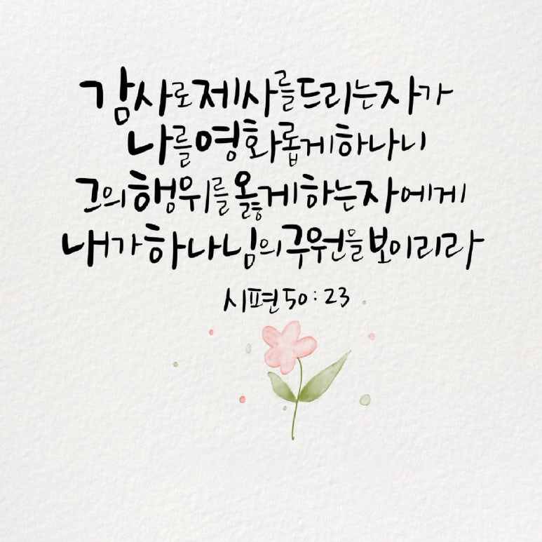 “감사로 제사를 드리는 자가 나를 영화롭게 하나니 그의 행위를 옳게 하는 자에게 내가 하나님의 구원을 보이리라”