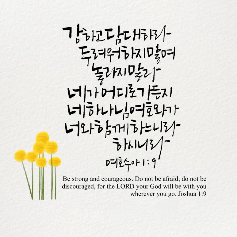 “내가 네게 명령한 것이 아니냐 강하고 담대하라 두려워하지 말며 놀라지 말라 네가 어디로 가든지 네 하나님 여호와가 너와 함께 하느니라 하시니라”