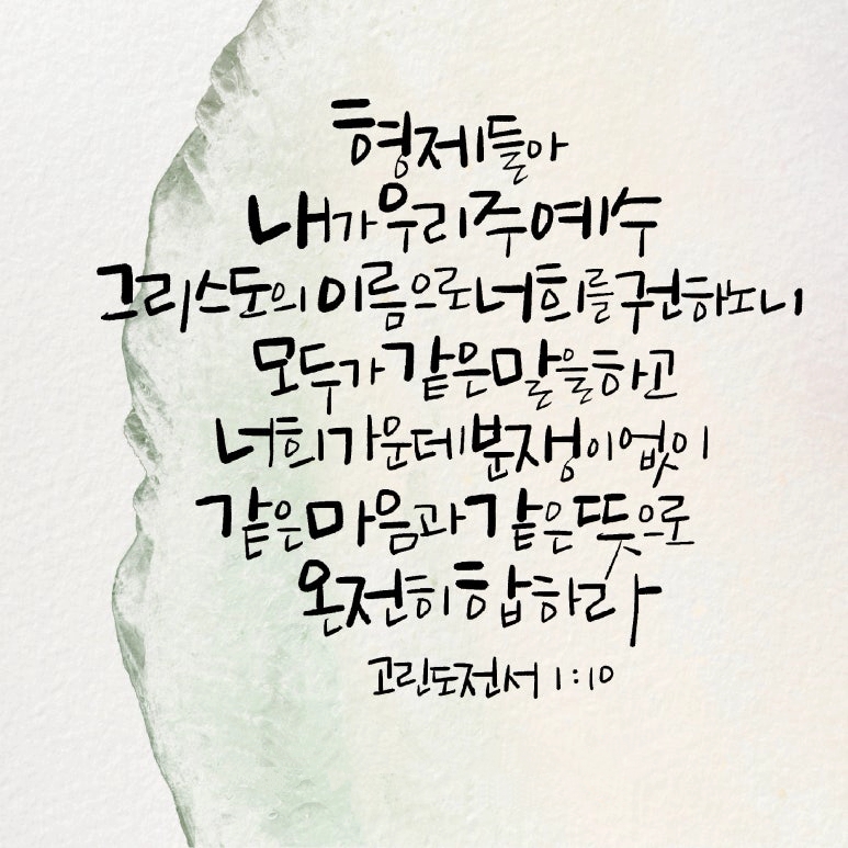 “형제들아 내가 우리 주 예수 그리스도의 이름으로 너희를 권하노니 모두가 같은 말을 하고 너희 가운데 분쟁이 없이 같은 마음과 같은 뜻으로 온전히 합하라.”