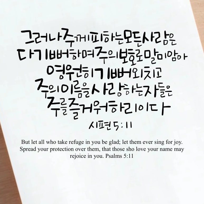 “그러나 주께 피하는 모든 사람은 다 기뻐하며 주의 보호로 말미암아 영원히 기뻐 외치고 주의 이름을 사랑하는 자들은 주를 즐거워하리이다”