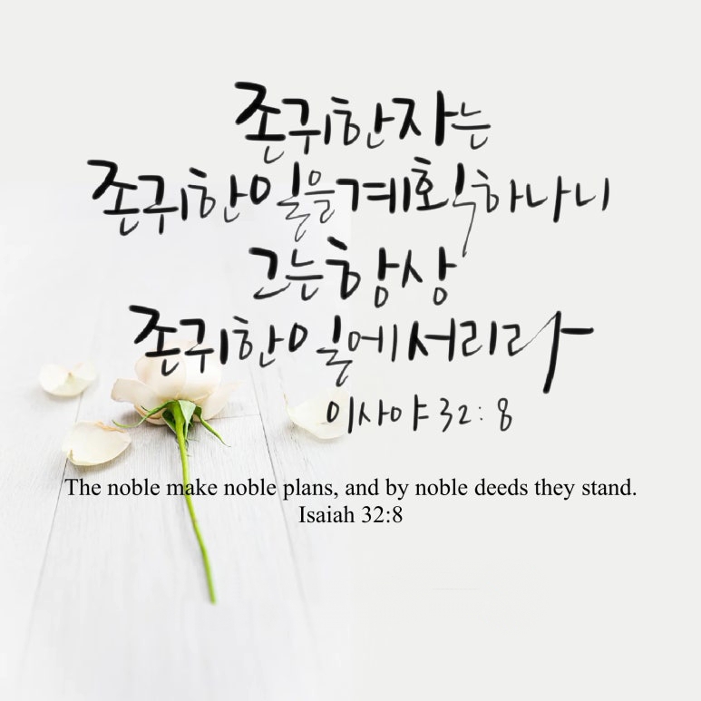 “존귀한 자는 존귀한 일을 계획하나니 그는 항상 존귀한 일에 서리라”
