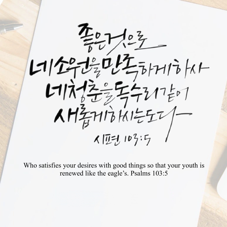 "좋은 것으로 네 소원을 만족하게 하사 네 청춘을 독수리 같이 새롭게 하시는도다"