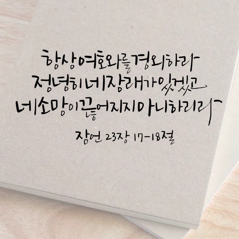 "네 마음으로 죄인의 형통을 부러워하지 말고 항상 여호와를 경외하라. 정녕히 네 장래가 있겠고 네 소망이 끊어지지 아니하리라"