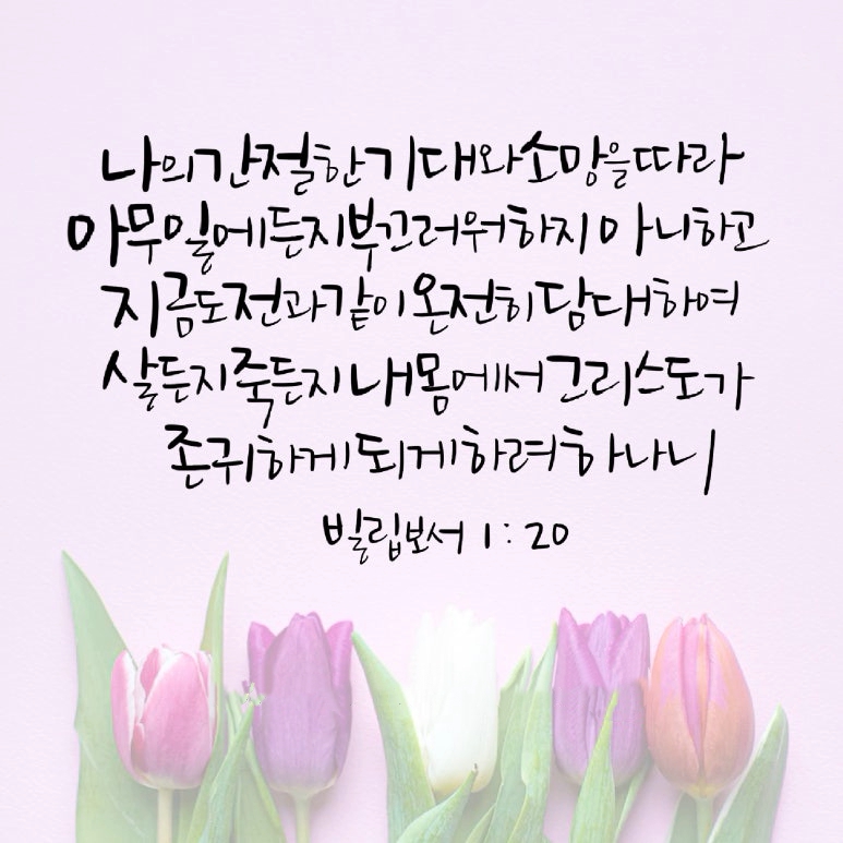 "나의 간절한 기대와 소망을 따라 아무 일에든지 부끄러워하지 아니하고 지금도 전과 같이 온전히 담대하여 살든지 죽든지 내 몸에서 그리스도가 존귀하게 되게 하려 하나니"