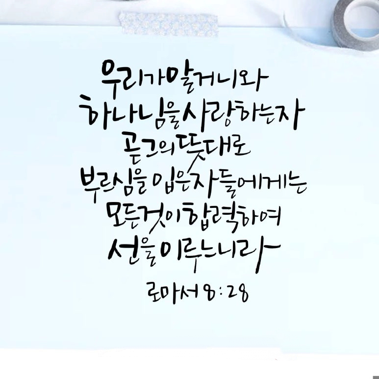 "우리가 알거니와 하나님을 사랑하는 자 곧 그 뜻대로 부르심을 입은 자들에게는 모든 것이 합력하여 선을 이루느니라"