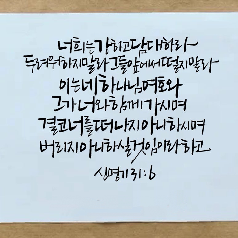 "강하고 담대하라 두려워하지 말라 그들 앞에서 떨지 말라 이는 네 하나님 여호와 그가 너와 함께 가시며 결코 너를 떠나지 아니하시며 버리지 아니하실 것임이라"
