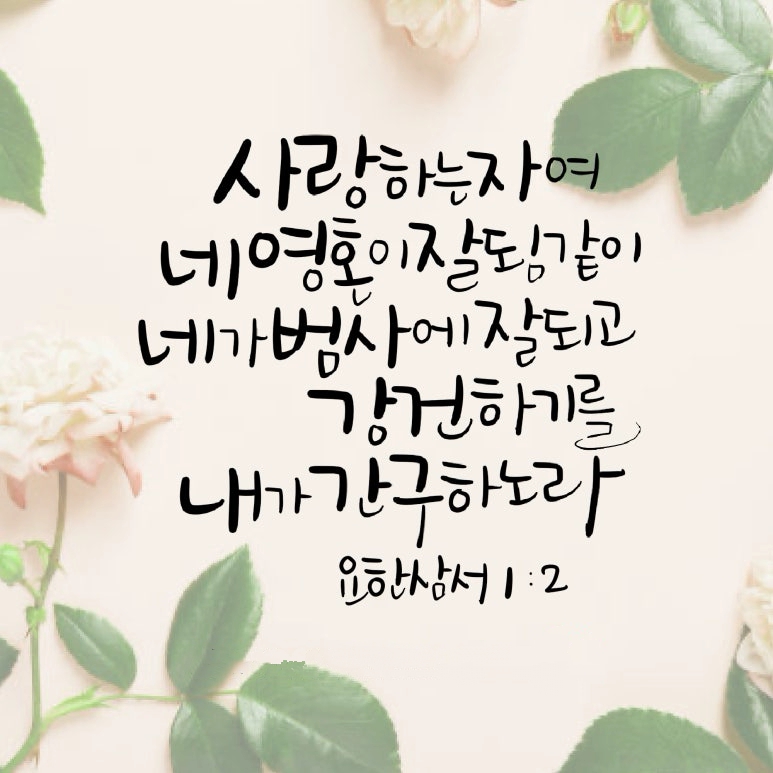"사랑하는 자여 네 영혼이 잘됨같이 네가 범사에 잘되고 강건하기를 내가 간구하노라"