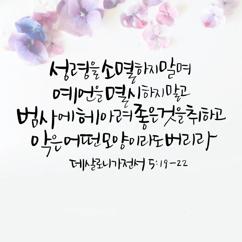 "성령을 소멸하지 말며 예언을 멸시하지 말고 범사에 헤아려 좋은 것을 취하고 악은 어떤 모양이라도 버리라"