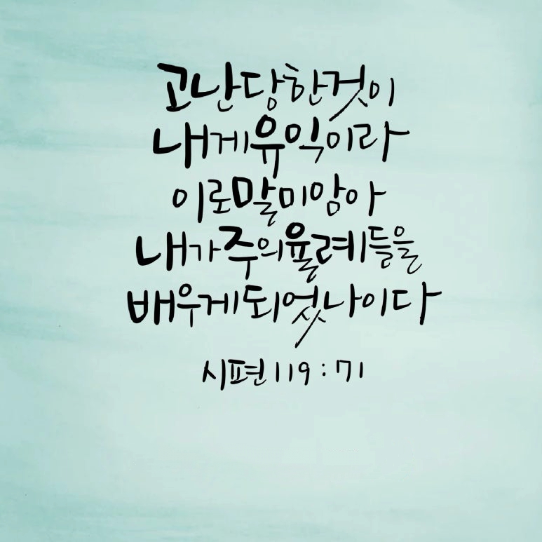 "고난 당한 것이 내게 유익이라 이로 말미암아 내가 주의 율례들을 배우게 되었나이다."